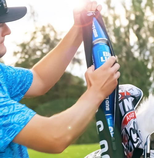 Forget bulky coolers. This insulated beer sleeve holds and chills up to seven cans in its vertical design that fits discreetly in your golf bag. It zippers open for easy retrieval and has a handle on top for comfortable carrying. “This is the third one I've bought for a guy friend or family member,” one reviewer said.