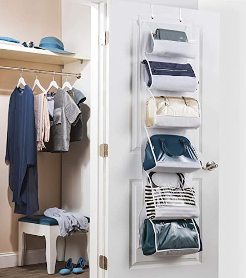 A large collection of purses and handbags can be tricky to store efficiently, but this over-the-door purse organizer is a great option. It has spacious compartments to hold up to six bags, with clear slots that keep contents in full view. Even if you don’t want to use this for bags, it can be great for towels or blankets.