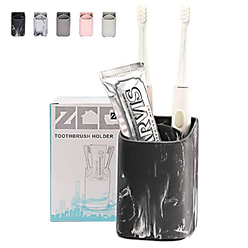 zccz Chic Black Marble Bathroom Must Haves Toothbrush Holder Set - Versatile Black Bathroom Accessories Set - Razors, Makeup, and Tooth Brush Holder