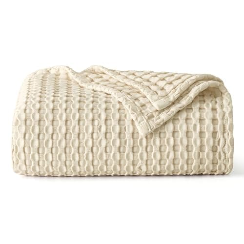 Bedsure Cooling Cotton Waffle Weave Blanket - Lightweight Breathable Blanket of Rayon Derived from Bamboo for Hot Sleepers, Luxury Throws for Bed, Couch and Sofa, Beige, 50x70 Inches