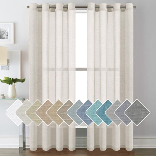 To let sunlight filter into the room while maintaining some privacy, hang these wildly popular linen curtains. They’re available in lots of colors such as natural, sage, and dove gray, and have metal grommets for easy hanging. The sheer material lends an airy vibe to the room and launders easily in the washing machine.