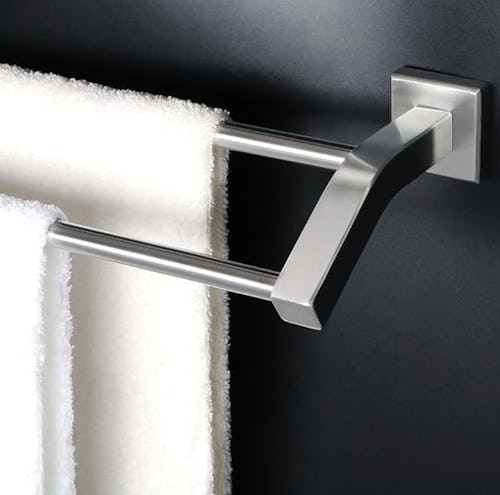 This sleek towel bar has a double-bar design, so you can hang two levels of towels at once and save a ton of space. It has a simple stainless steel finish that’s designed to resist scratches and even corrosion in the damp bathroom (AKA — it will look expensive for a long time).