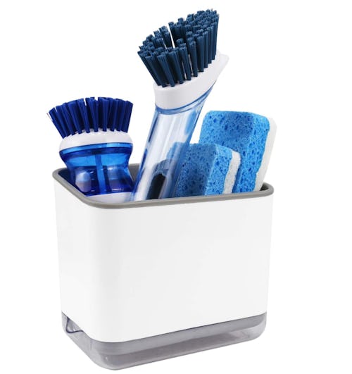 This sink caddy comes with three tidy storage slots and a built-in drainage tray to catch all of the extra water that drips from your brushes and sponges. Simply tilt it to pour out the extra soapy water, or pop off the entire tray to give it a rinse.