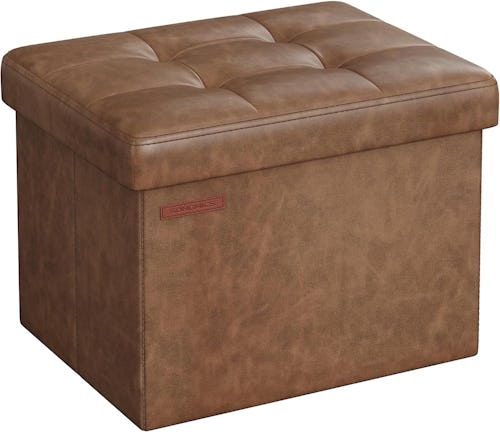 This storage ottoman has so much going for it. Firstly, it’s perfect for storing miscellaneous clutter such as extra blankets, pillows, toys, or books. Secondly, it doubles as a comfortable place to rest your feet or act as additional seating. And thirdly, it can fold up to take up barely any space when stored. It is designed in chic faux leather and comes in coffee brown, chestnut brown, dark gray, and ink black.