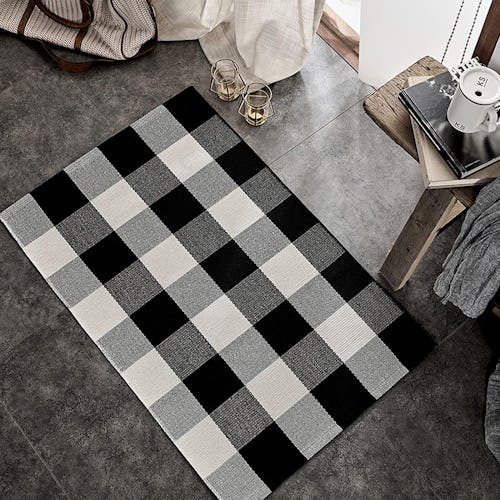 Add a touch of cozy decor with this buffalo plaid rug that comes in six colors and various sizes. It’s hand-woven from 100% cotton and feels soft on your feet. Thick and durable, the rug is great for high-traffic areas and can be cleaned easily in the washing machine.