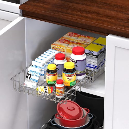 Instead of straining to reach things at the back of the cabinet, use this pull-out organizer to keep everything tidy and easily accessible. Made from sturdy metal, the sliding basket can hold up to 30 pounds and fits most kitchen and bathroom cabinets. “These roll out shelves are smooth and sturdy. They are easy to assemble and hold quite a bit,” one reviewer shared.
