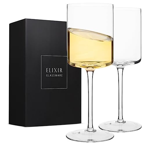 Crystal Wine Glasses, Modern & Elegant Square Glass Set of 2, Large Red Wine or White Wine Glass - Unique Gift for Women, Men, Wedding, Anniversary - 14oz