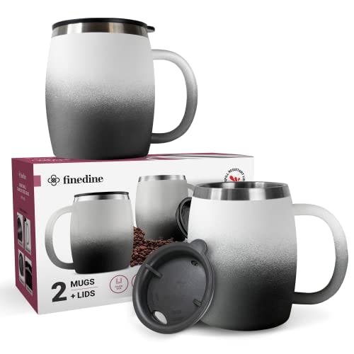 FineDine Insulated Stainless-Steel Coffee Mug with Lid and Handle (2 Pk) 14 oz - BPA-Free Spillproof Lid, Double-Wall Camping Travel Coffee Mugs, White/Black