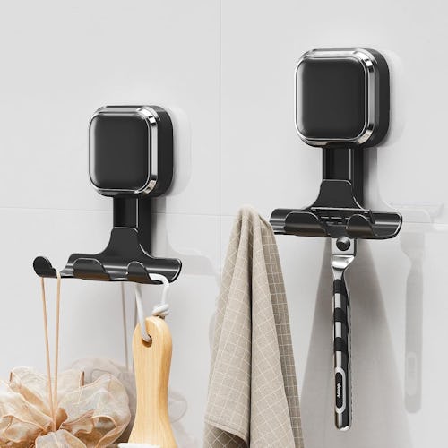 Razors, scrubbers, hand towels — these hooks are perfect for storing all of them and more. Installation is a total breeze, as a sturdy suction cup on the top of each one lets you secure them to mirrors, tiles, or any other smooth, non-porous surface. Choose from two colors: black or white.