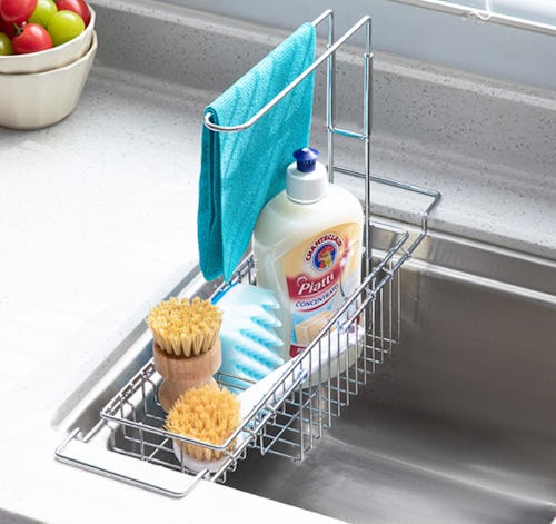 Leaving sponges in the bottom of your sink can lead to mildew. Instead, store them inside of this caddy. Its aerated design allows scrubbers to dry quickly, while the stainless steel frame won’t rust over time. The best part? Since it can expand from 15 out to 20 inches, you shouldn’t have trouble fitting it overtop sinks both large and small.
