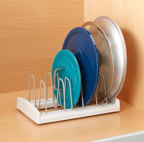 Looking for ways to organize your kitchen? Search no further than this rack. The dividers can be adjusted to fit lids, baking sheets, or even cutting boards — and each divider features a protective coating to help prevent scratches. Plus, nonslip feet on the bottom help keep it from shifting around inside of cabinets.