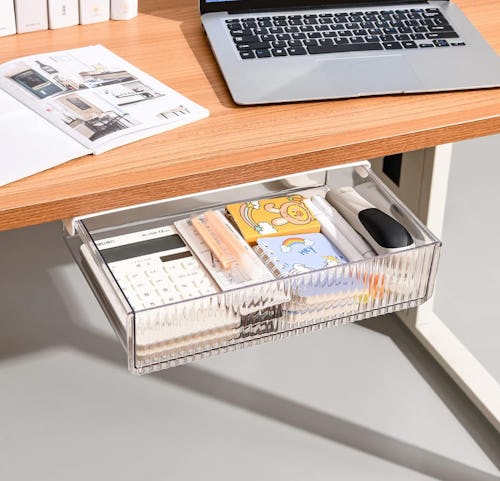 If your desk is low on storage space, consider taking a look at this drawer. Installation is as easy as pressing it into place underneath your desk using the included adhesive. Plus, the adhesive bond is so strong that it can hold up to 11 pounds.