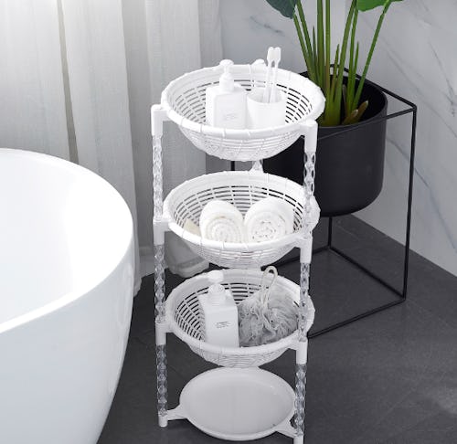 Bathroom sundries, craft supplies, fruits and veggies — this stack of baskets can be used to store all sorts of items. Its compact footprint fits easily into tight spaces, and you can remove baskets in order to adjust its height if needed. The sturdy base also helps keep it from tipping over when filled to the brim. One reviewer wrote, “I use it in the kitchen to store onions, garlic, tomatoes, and potatoes. It takes very little space and works so well.”