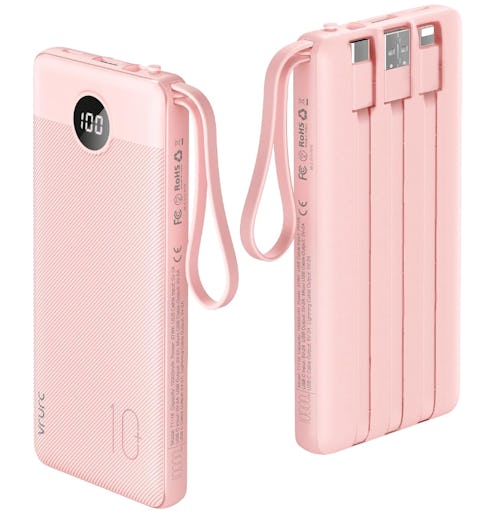 There’s no need to carry around an extra charging cable when you have this external battery. It features three built-in cables so that you can charge a variety of devices: one type-C, lightning, as well as a micro-USB. Plus, an LED display on the front makes it easy to keep track of how much power it has left.