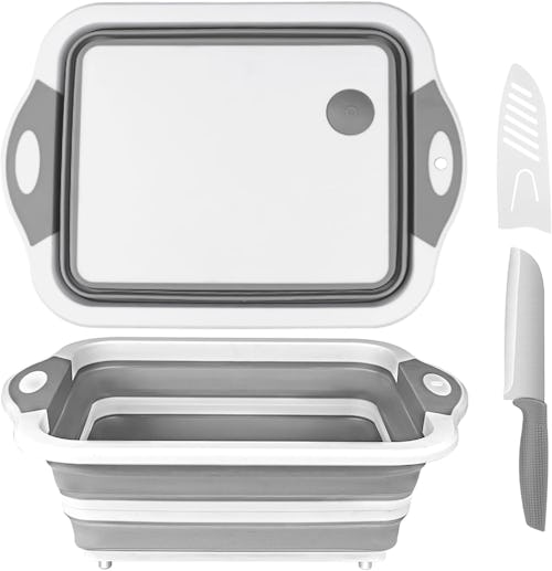 A compact, collapsible cutting board & colander duo that’s idel for campers