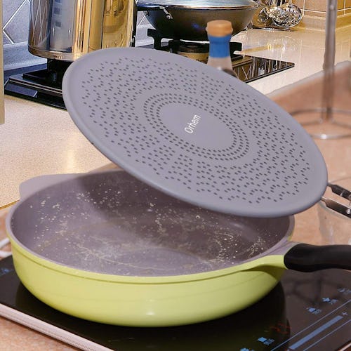 With this splatter screen you can cook bacon or fry chicken while protecting yourself — and your countertop and backsplash — from greasy burns and messes. The splatter guard is made of super fine stainless steel mesh that allows steam to be released while keeping any splattering grease inside. It’s dishwasher-safe, heat-resistant, rust-resistant, and has resting feet to keep grease off your counters while you’re cooking.