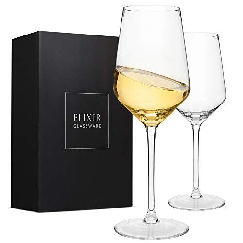 ELIXIR GLASSWARE White Wine Glasses – Hand Blown Crystal Wine Glasses – Set of 2 Long Stem Wine Glasses – Gift for Wedding, Anniversary, Christmas – 13 oz, Clear