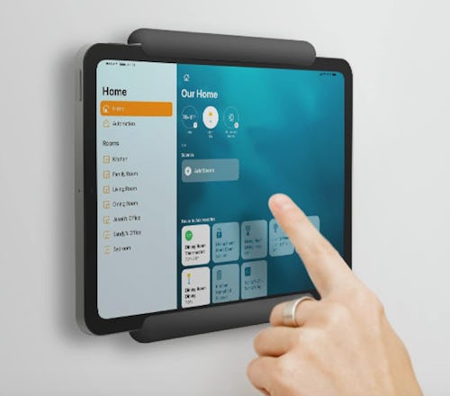 This tablet wall mount is compatible with the iPad Mini, iPad Air, and iPad Pro, and makes it so easy to use your tablet without holding it. The tablet slides securely into the mount, which attaches to the wall with screws. It sits far enough away from the wall to allow space for power cables and doesn’t block any of the buttons on the side.