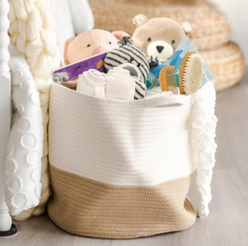 Amazon -This rope basket is so versatile: you can use it to store blankets or pillows, fill it with toys, or even use it for a large faux potted plant. It’s firm and will stand up nicely, with carry handles that make it easier to move it around. And the neutral shades allow this to work with almost any decor.