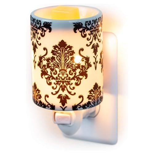 Dawhud Direct Wall Plug in Wax Warmer Night Light - Electric Candle Warmer Melts for Home Fragrance - Pluggable Outlet Scented Wall Scented Wax Melter Nightlight - Ceramic Damask (2.8" x 2.5" x 5")