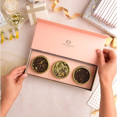 Amazon -There’s no need for any extra wrapping when you’re gifting this box of premium teas to someone, as they already come packaged in a gorgeous box. Each box comes with three types of tea: Kashmiri Kahwa chai spiced green tea, chocolate vanilla herbal tea tisane, and cinnamon chai spiced black tea. Plus, all three teas are non-GMO as well as gluten-free.