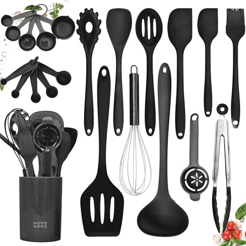 Home Hero Silicone Kitchen Utensils Set - Cooking Utensils Set - Silicone Cooking Utensils Set - Silicone Utensil Set - Silicone Utensils For Cooking Kitchen Utensil Set (22 Pcs - Black)