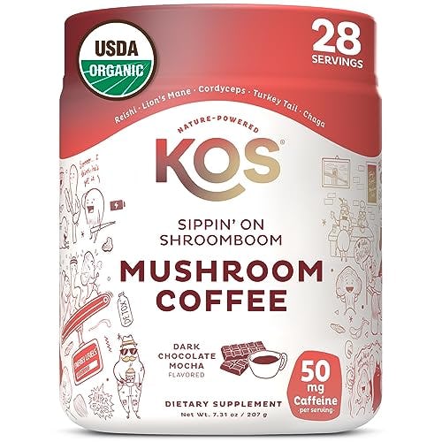 KOS Mushroom Coffee - Dark Chocolate Mocha Flavor - Organic Instant Coffee Mix with Reishi, Cordyceps, Lion's Mane, Chaga & Turkey Tail Mushrooms