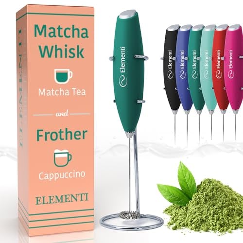 Elementi Matcha Whisk & Frother Set - Electric Matcha Mixer, Matcha Kit, Matcha Tea Set, Matcha Whisk Set, Matcha Wisk for Matcha Powder, Milk Frother for Matcha Lattes (Emerald Green)
