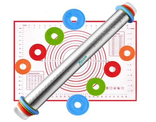 Consider this rolling pin a much-needed upgrade from the outdated wooden one you’ve likely been using. You can adjust how thick your dough rolls out by up to four levels simply by switching out the colored end pieces — and the stainless steel metal won’t rust over time. The best part? Each order also includes a silicone baking mat printed with helpful guide lines.
