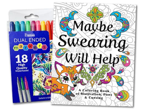 An adult coloring book with fun swear words & markers included