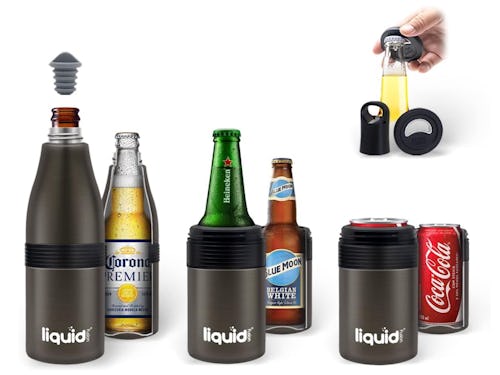 Whereas some stainless steel koozies only fit cans or bottles, this one features a versatile design that can be adjusted so that it fits water bottles, glass bottles, as well as regular cans. Its vacuum-insulated walls also help keep your hands dry from condensation. The best part? Each order also includes a bottle opener for convenience.