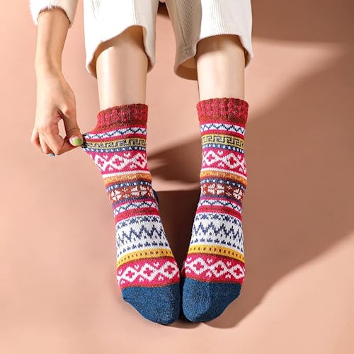 Cozy, colorful socks made from a warm wool blend