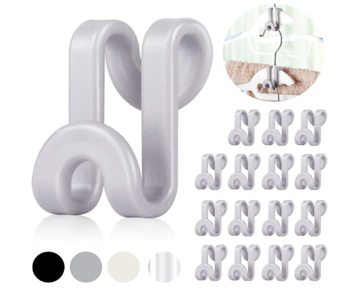 These hanger hooks pop onto the top of any hanger to give you space to hang another garment. It’s perfect for when you’d like to keep similar pieces or matching sets together. It will also maximize your closet space and allow you to make the most of every inch. Your order comes with 15 pieces.