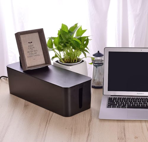You can now have as many devices plugged in as you need without worrying about your desk or bedside table looking a mess. This lidded cable management box can easily contain a power strip, and it comes with both cable holders and cable ties so that you can further minimize clutter. Choose from black or white in the listing.