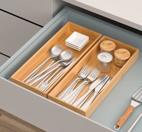 Apart from utensils, you can keep almost anything in this pair of drawer organizers. Their sleek bamboo build will bring elegance to any space and is extremely long-wearing. One reviewer wrote, “I was so pleasantly surprised!! Definitely an upgrade from plastic utensil trays.” Choose from a variety of sizes in the listing.