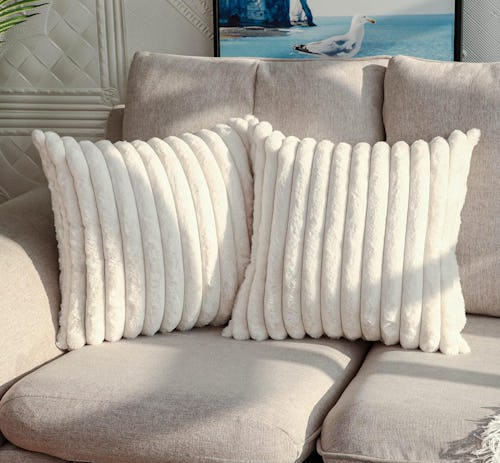 Bring some pizzaz to your couch or bed by picking up this pair of faux fur pillow covers. They have a polished channeled design and a super fluffy material that will not only be comfortable lay on but will look great. Each one even has an invisible zipper and they come in lots of colors in the listing.