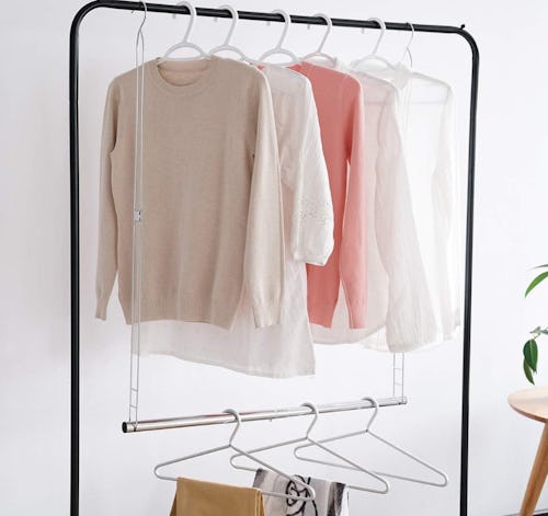 Since the steel rods of these hanging closet rods are adjustable in both height and width, you can arrange for the bar to fall perfectly underneath your top row of clothes. Each one in the pair can hold over 20 pounds.