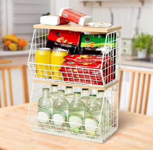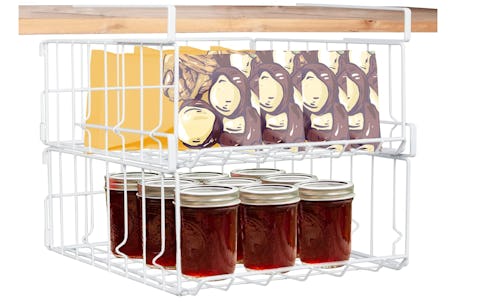 These two under-shelf storage baskets give you a way to add storage space without creating clutter on your counters. Slide them into place in the kitchen to hold up to 22 pounds of snacks or produce — or in your bedroom to holds sweaters and jeans.