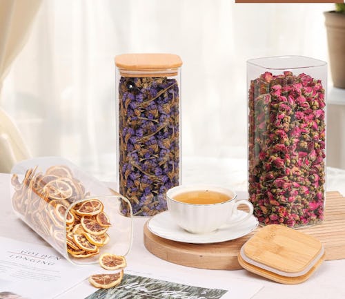 These 61-ounce glass food storage containers are so chic that you won’t even want to keep them tucked away in a cabinet. Fill them with pasta or neatly arrange cookies inside. The silicone seal will keep everything inside fresh.