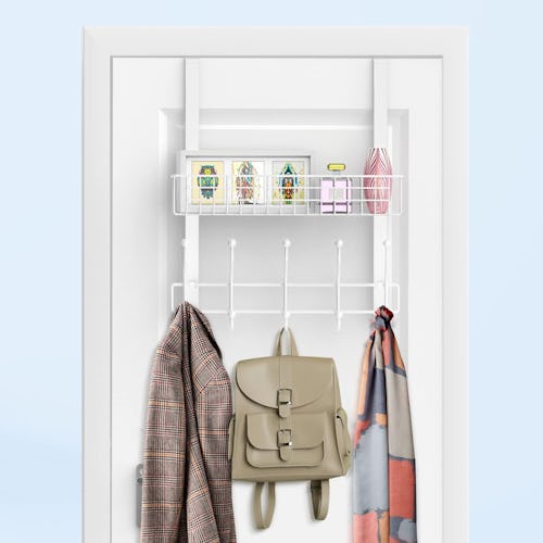 Believe it or not, this over-the-door storage rack can hold up to 50 pounds between its shelf and five hooks. Feel free to pile on your coats, umbrellas, picture frames, and more. The weight won’t even damage the door — the top hooks are padded to prevent scratches. A larger version is also available in the listing.