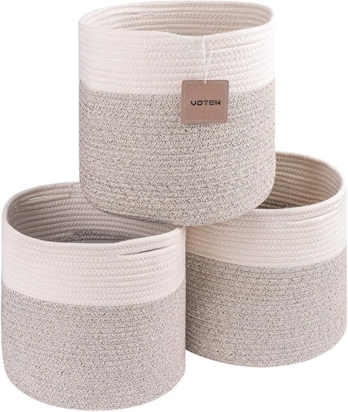 If you need to store things out in the open, they might as well be placed in this trio of woven storage baskets that look like decor themselves. Their soft colors will add personality to your space as they hold extra throw pillows in your living room or your scarf collection in your entryway so you can grab and go. And they’ll be easy to move from one room to another since they have built-in handles.