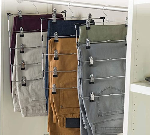 Running low on room inside your closet? Try swapping out your hangers with these space-saving ones. Each one can hold five pieces of clothing in the space that a single hanger would normally take up. And since the clips are tipped with soft rubber, there’s no need to worry about them damaging your clothes.