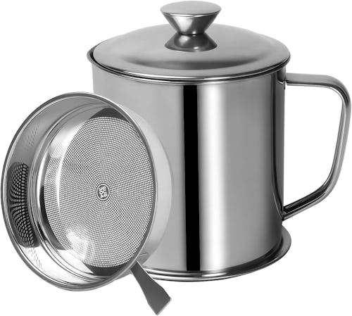 If you’re not holding onto excess bacon grease to use in sautés, homemade popcorn, or oven fries, you’re missing out. This stainless steel bacon grease container comes with a strainer for keeping out burned bits and it can hold up to 7.5 cups of oil or fat. It’s also a great way to reuse frying oils.