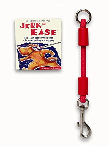 JERK-EASE BUNGEE DOG LEASH EXTENSION – Patented Shock Absorber Attachment Protects You and Your Dogs – Works with ANY Leash & Collar or Harness – a MUST for Retractable Leashes – PICK SIZE/COLOR BELOW