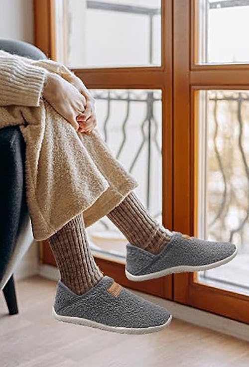 At first glance, these fuzzy house slippers look almost like sneakers thanks to their closed back and rubber sole — but their faux-fur uppers make them soft, warm, and cozy. The backs are also flexible for wear as slip-ons and the EVA bottoms are non-slip and suitable for light outdoor use. Get them in tons of colors and patterns.