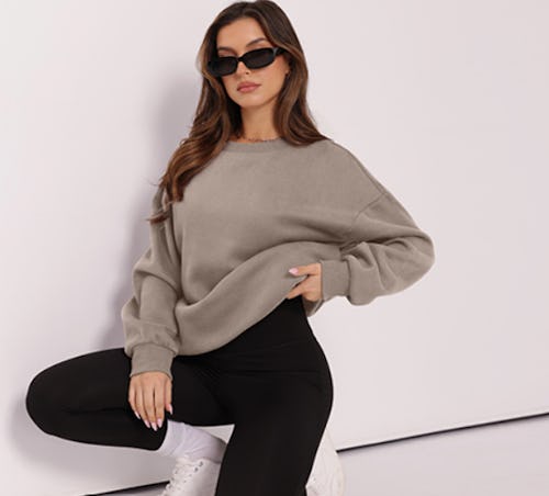 “One of the best sweatshirts ever. AND it has pockets!” one reviewer raved about this crewneck pullover. It’s oversized and has a soft fleece lining that keeps you extra cozy while relaxing at home — but if you do need to go run an errand, its dropped shoulders, split hem, and sleek exterior ensure that you look put together.