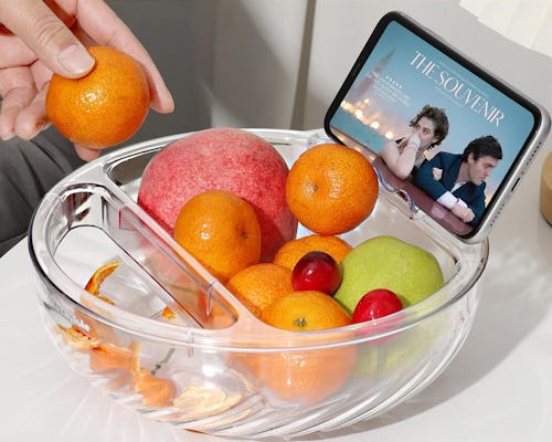 This double-layer snack bowl has a brilliant design. The detachable upper bowl holds your fruit or nuts, while the bottom gives you a spot to toss your shells and peels. You can also use it for washing and draining produce, or you can fill the bottom with ice to keep food fresh and chilled. It even has a built-in mount for your phone.