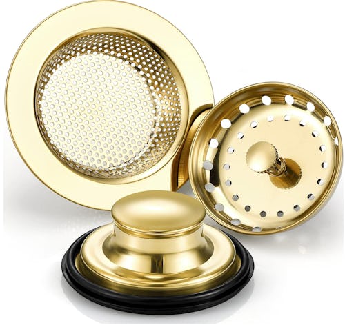 This three-piece set comes with a plug-style stopper, strainer, and basket — they’re necessities for your kitchen sink. All of the pieces are made from stainless steel with a gold finish. They look high-end but cost under $15. And they’re designed to fit in most standard sinks. They’re also available in an oil-rubbed bronze graphite gray, and other finishes in the listing.