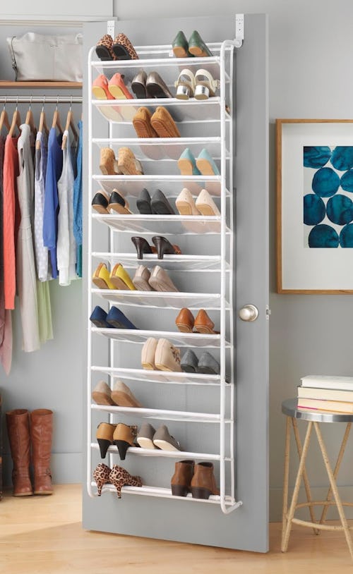 Utilize the area behind your door for storage — this shoe organizer makes it easy to do. It can hold up to 36 pairs across its 12 tiers, and the mesh-lined back prevents them from falling as you open or close the door. The organizer will fit on most standard interior doors.