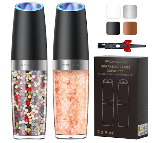 Powered by batteries, these salt and pepper grinders will automatically start grinding when tilted, then stop when positioned upright — they couldn’t be any simpler. Each one holds nine ounces’ worth and there are various coarseness settings to choose from.